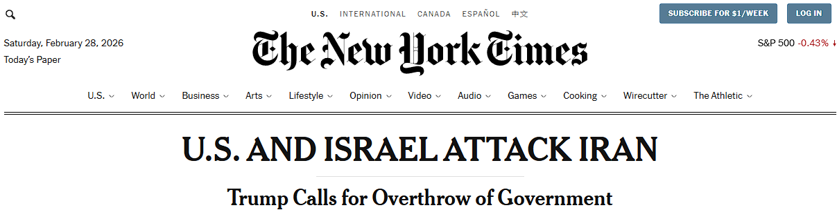 Well, here we are. In what should be a surprise to literally no one, Dear Leader has unilaterally, and unconstitutionally, declared war on Iran. Oh, sorry, did I say unilaterally? My bad. He is joined in this endeavor by our erstwhile ally (and genocide doer) Israel. And… that’s about it. Don’t believe me? Let’s check in with the New York Times: